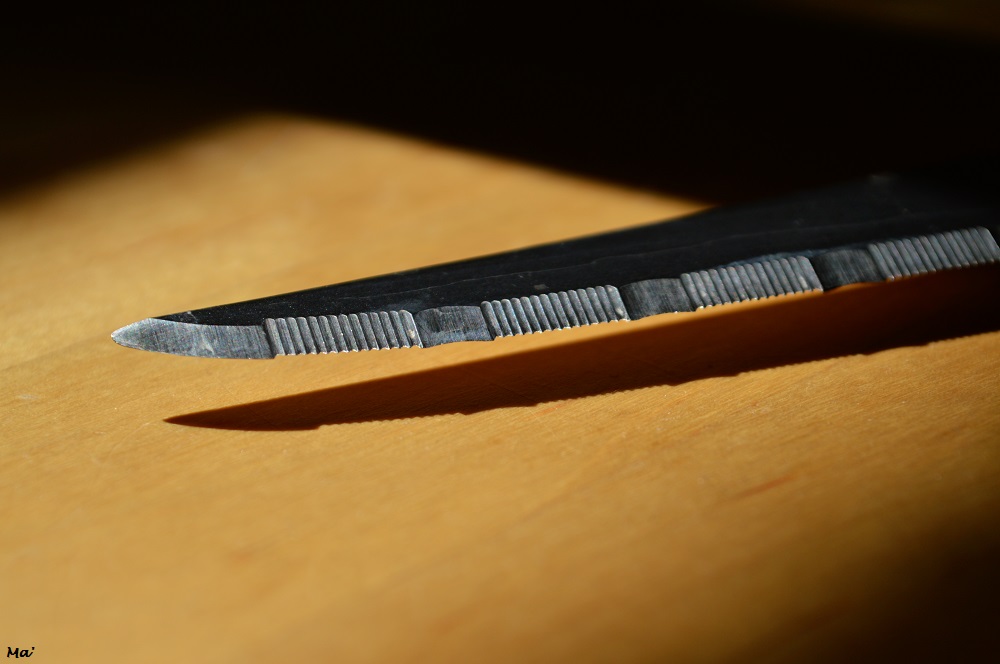 Dans les commentaires du billet d’hier : le thème Piquant du projet 52, Soène disait qu’on avait peu de chances de voir une pointe de couteau. N’ayant pas l’occasion de sortir faire des photos, j’en fais chez moi… alors j’ai pris cela comme un défi. Voici donc une pointe de couteau !