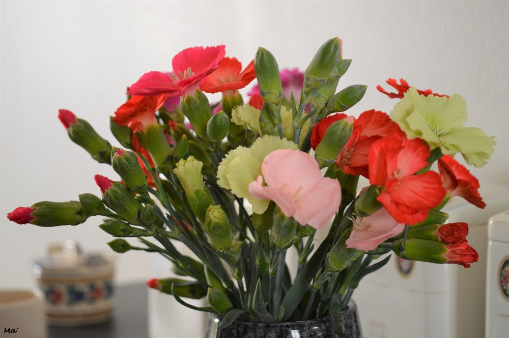 DIMANCHE 31 MAI. J’ai choisi un petit bouquet d’oeillets pour apporter une touche colorée et parfumée dans la maison.