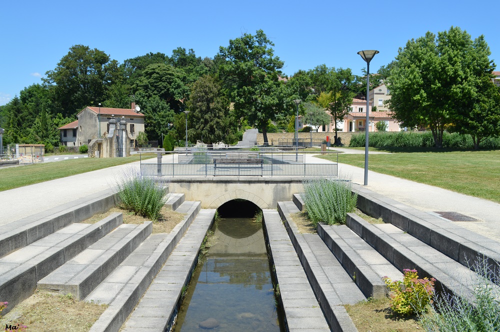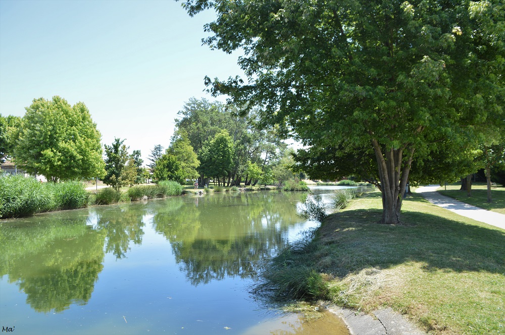 Après avoir découvert un charmant lavoir public (alimenté par une source), nous traversons le parc paysager qui entoure le canal arrivant du lac et se déversant dans le lavoir, puis nous commençons à faire le tour du lac.