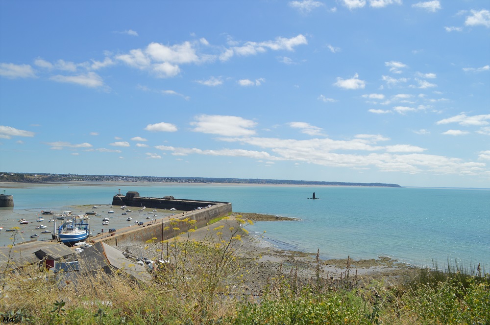 En été, nos balades granvillaises commencent souvent à la pointe du Roc. En effet, on y trouve assez facilement du stationnement… et la vue sur le port et la mer est splendide.