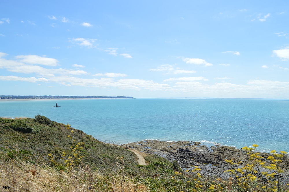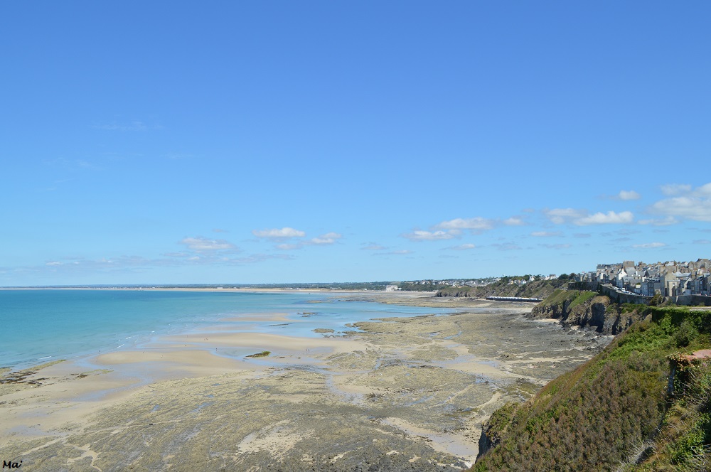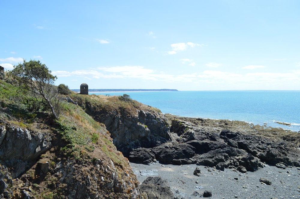 Le chemin qui longe la pointe du Roc a été rouvert (il avait été interdit d’accès suite à des éboulements), et c’est un véritable plaisir que de le parcourir à nouveau. Là, au cœur de la ville ou presque, entre les vestiges des blockhaus du mur de l’Atlantique, on se retrouve sur un sentier côtier sauvage avec les îles Chausey en point de mire à l’horizon….