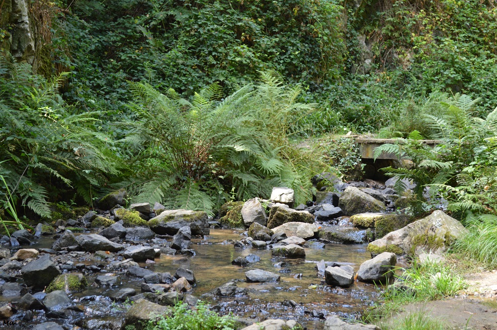 Nous retournons ensuite à la voiture en longeant la route principale. Bien fatigués après cette randonnée en forêt (et une chute dans la petite cascade… les pierres y sont très glissantes), nous n’avons pas fait le crochet par l’abbaye blanche, ni ne sommes allés à la côté 314. Cela nous donnera l’occasion de revenir dans le Mortainais !
