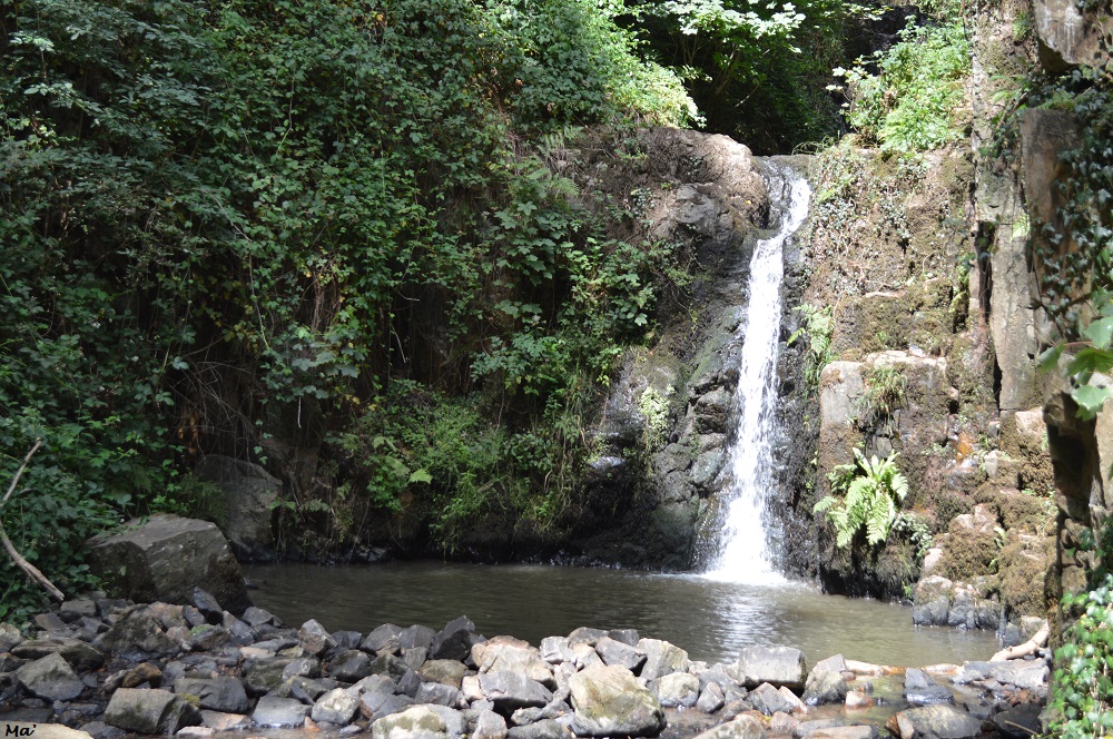Après être redescendus, nous empruntons la voie verte jusqu’au Neufbourg où nous contournons la jolie petite église de style anglo-normand avant de nous diriger vers la grande cascade. C’est a priori la plus impressionnante des deux mais il y a réellement foule : nous avions eu une impression de monde à la petite cascade mais ce n’était rien à côté de ce que nous constatons ici. L’endroit, rafraichissant et proche de la ville, est très couru. Beaucoup de familles sont installées au bord de la cascade et s’y baignent. Nous ne ferons donc que passer sans vraiment profiter de la beauté des lieux…