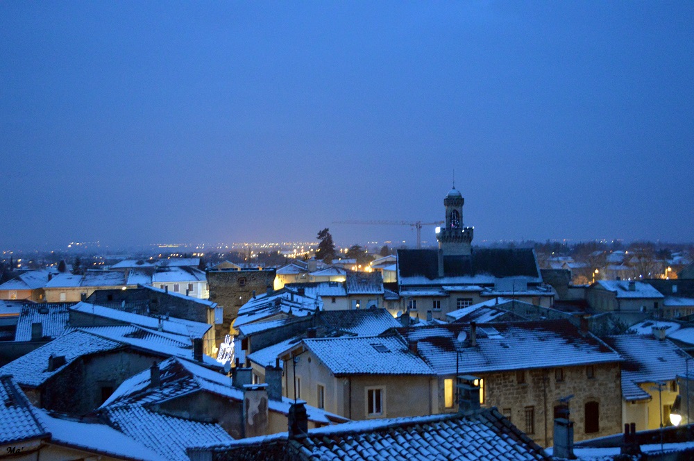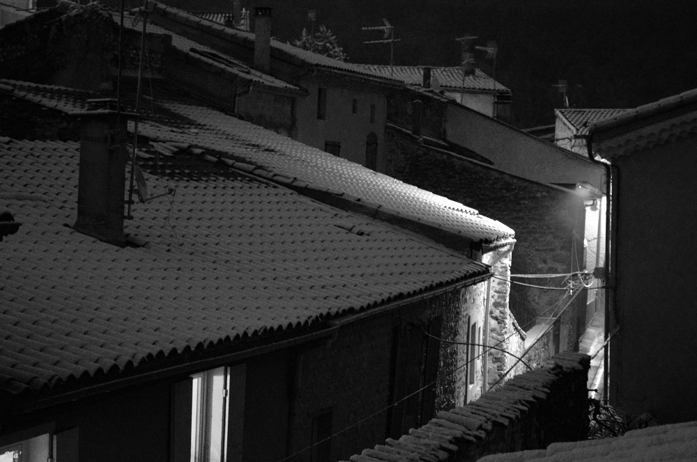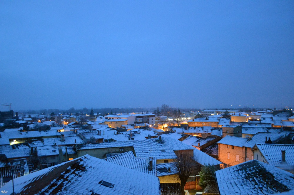 Dans la nuit de lundi à mardi dernier, il a neigé. En regardant par la fenêtre avant d’aller me coucher, j’ai découvert les toits blanchis. Alors, j’ai décidé de m’arranger pour pouvoir m’octroyer une pause dans le travail au lever du jour afin d’aller marcher un peu au dessus de Chabeuil.