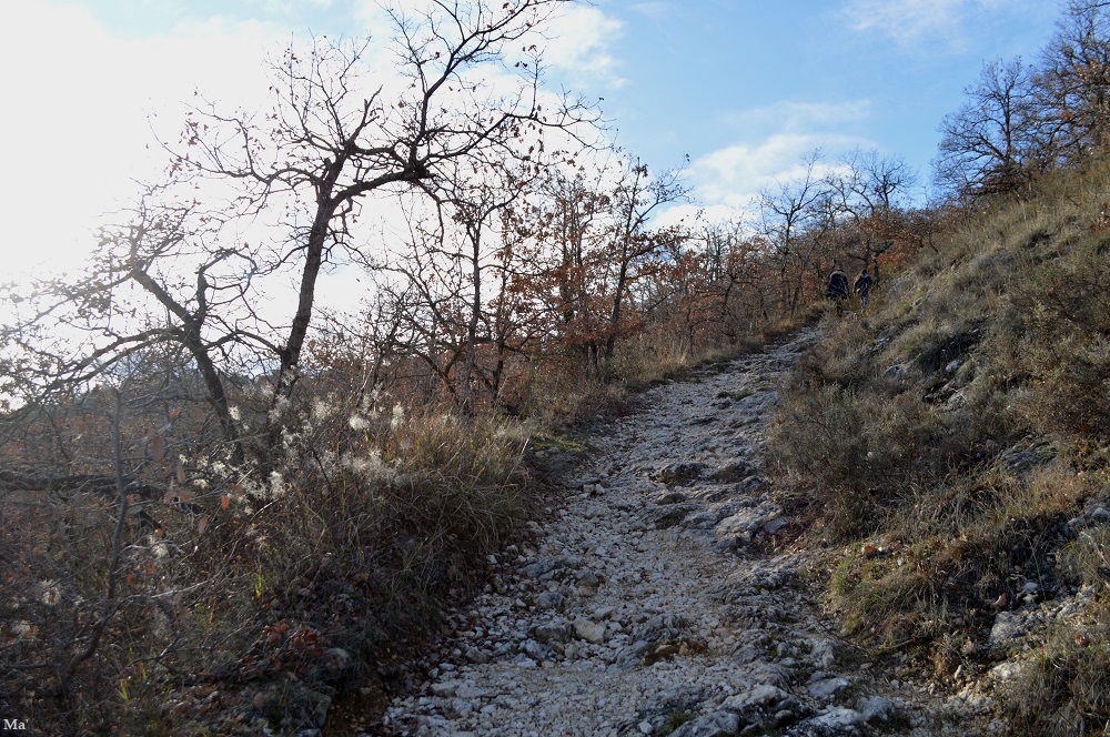 Si j’aime bien aller à la Chapelle Sainte Marguerite, au dessus de Combovin, nous nous sommes aperçus que nous n’y étions jamais montés en famille ! Il était donc impératif de remédier à cela… Entre les fêtes, c’était la sortie parfaite pour prendre l’air sans avoir à hâter le pas au retour : l’après-midi était en effet déjà bien engagé quand nous nous sommes décidés.