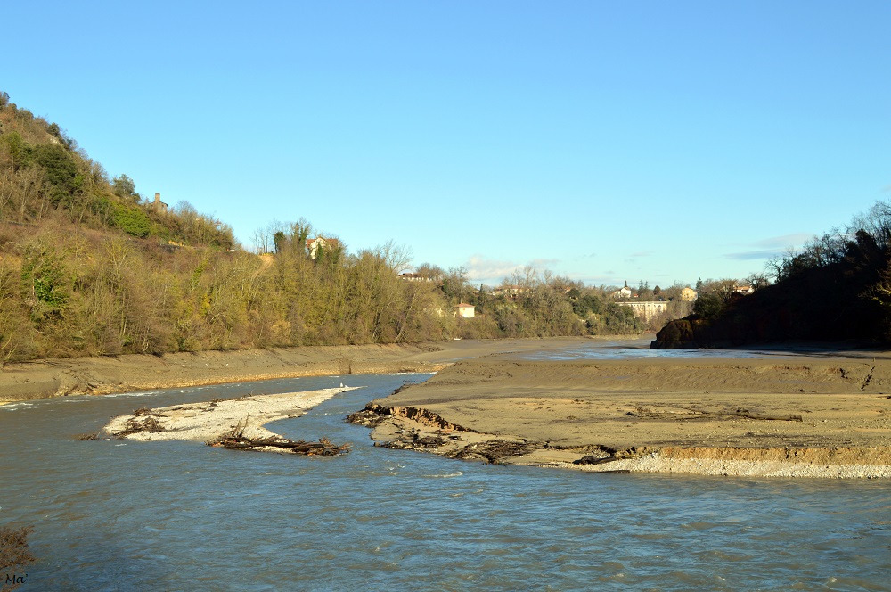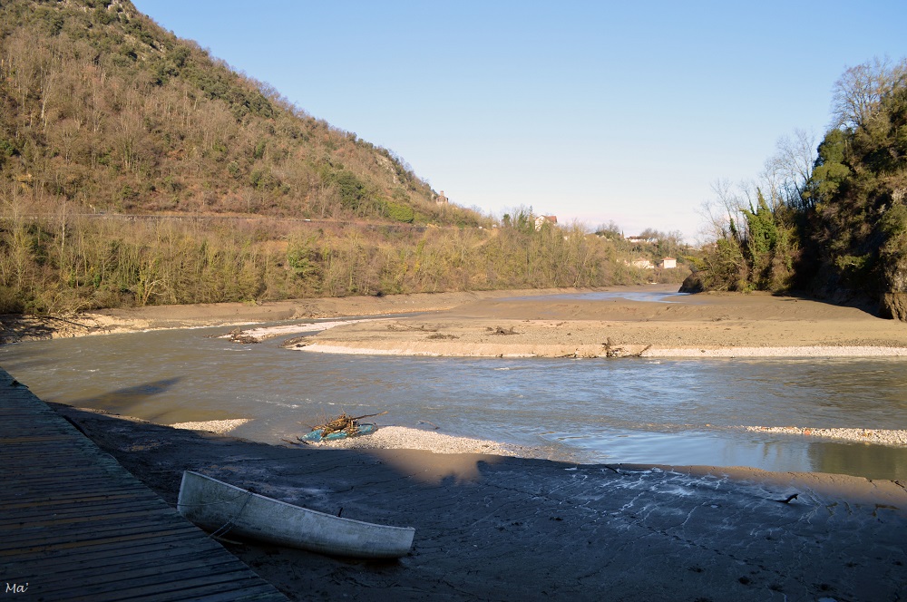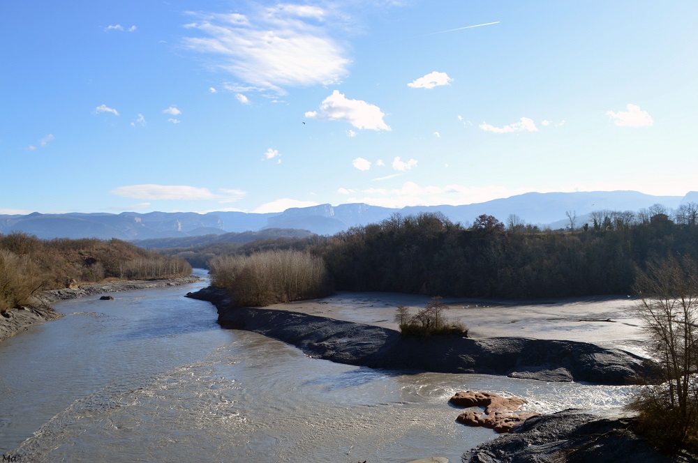 J’avais vu passer sur les réseaux sociaux que le plan d’eau du barrage sur l’Isère de Saint Hilaire du Rosier était en train d’être purgé. Hier, j’ai eu l’occasion de faire un saut à Saint Nazaire en Royans afin de voir cela.