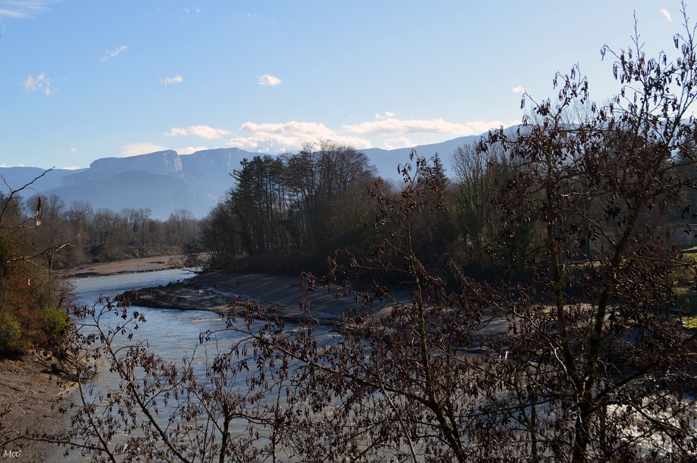 En amont de Saint Nazaire, la Bourne s’étale également moins, coulant selon son lit naturel. Et en aval de Saint Nazaire, on constate le même phénomène également sur l’Isère.