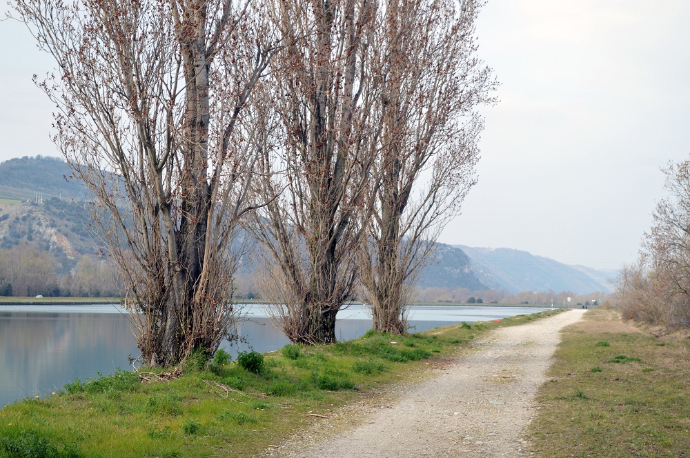 (*) Au niveau du barrage de Bourg-lès-Valence, il y a un parking de la Via Rhôna. Il suffit ensuite de s’engager sur la Via Rhôna en remontant le cours du fleuve. Au moment où la Via Rhôna tourne sur la droite, il est possible de continuer tout droit en longeant le bassin du barrage. Le chemin le long du fleuve rejoint la Via Rhôna environ 1.5 km plus loin.