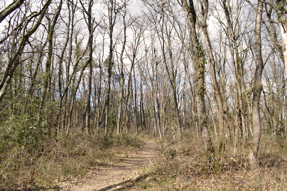 Ayant une cheville pas encore tout à fait remise d’une grosse entorse le jour où j’ai fait la balade, je ne suis pas partie du village d’Upie mais je me suis stationnée au bord de la route vers le hameau de Coucourdon. J’ai alors avisé un sentier qui s’enfonçait dans la forêt et l’ai emprunté.