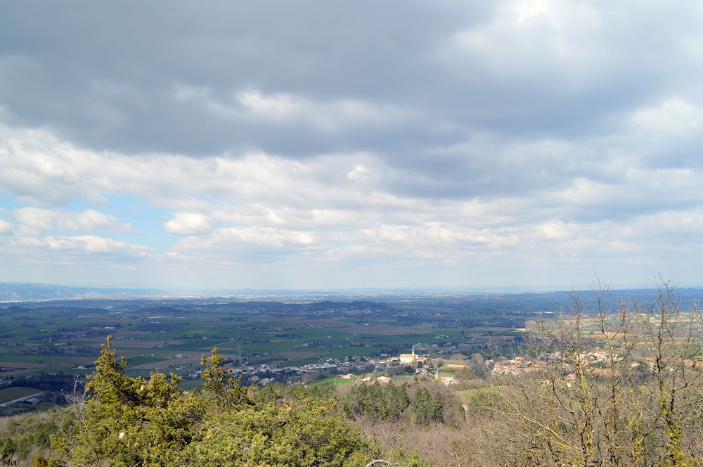 Et en effet, ce chemin s’avère être un choix judicieux : pente plus douce et régulière, jolis points de vue sur la Raye et les Trois Becs, … Je redescend doucement vers Coucourdon. De là, je récupère le sentier balisé en jaune pour retrouver mon point de départ.