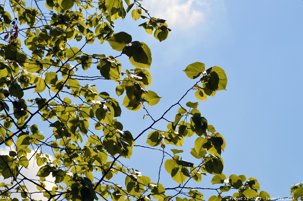 Cette semaine dans le projet 52, nous allons donc lever les yeux. Et en levant les yeux, ce que je vois, c’est le ciel (qui n’a pas vraiment été aussi bleu toute cette semaine… la photo date de la fin de la semaine dernière). Et quand je regarde le ciel, j’aime bien me mettre sous un arbre pour que le soleil ne vienne pas trop m’éblouir !