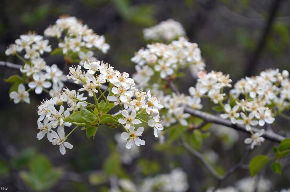 Avec Mr 2e, nous sommes donc partis du centre du village et avons attaqué la montée. Un épisode de gel intense avait fait de gros dégâts quelques jours plus tôt dans la région et au bord du chemin, nombre d’arbustes avaient des fleurs, des bourgeons ou des jeunes feuilles brûlés. Certaines floraisons, moins fragiles ou situées sur des endroits plus abrités, avaient toutefois résisté. Le printemps avait effectivement commencé à s’installer.