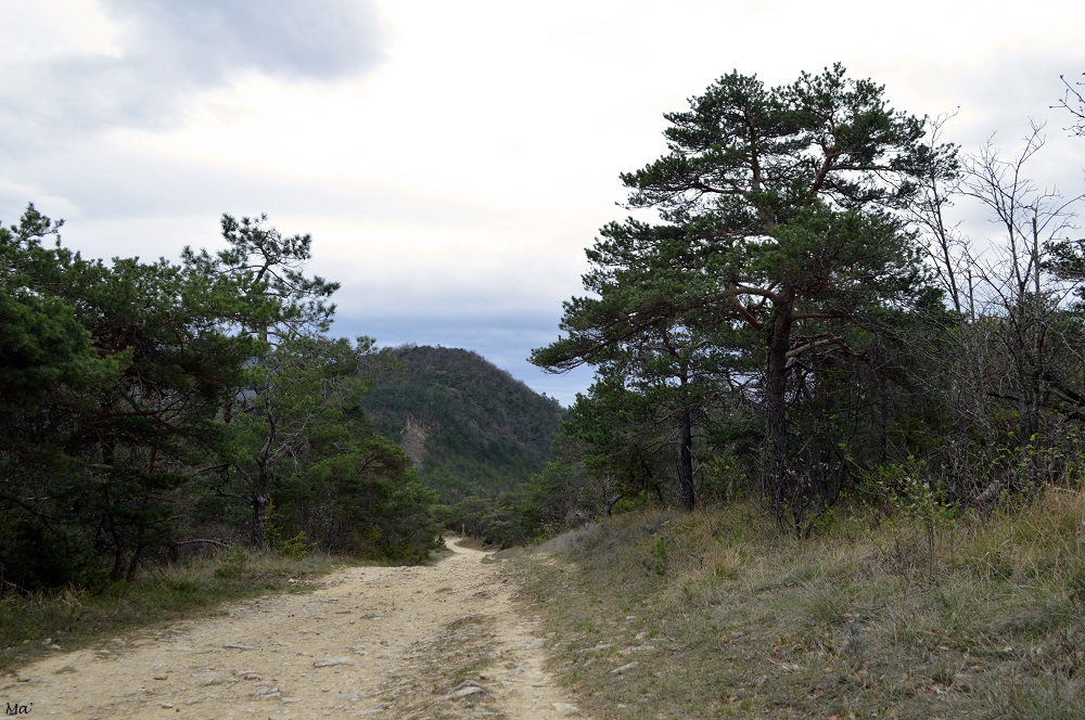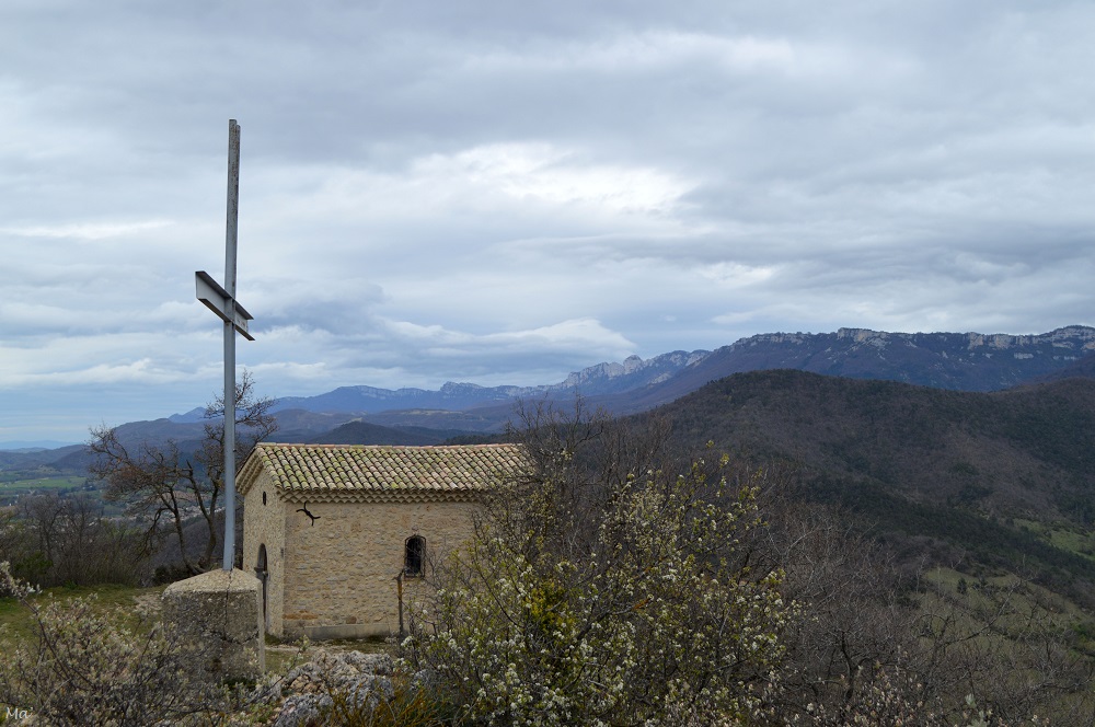 Une fois arrivé à la chapelle et après avoir un temps admiré la vue sur la plaine de Valence d’un côté et sur les différents vallons des ruisseaux de Combovin de l’autre, nous avons décidé de continuer vers les Terres Blanches plutôt que de redescendre par le chemin pris à l’aller.