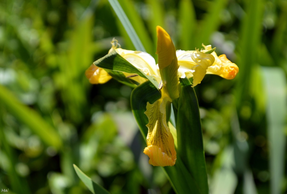 C’est un concert de grenouilles qui m’a accueillie. Il n’a pas été très difficile de les trouver et les observer. J’ai également passé un bon moment à admirer le ballet des libellules et à regarder les têtards. Après avoir longé les jardins ouvriers, c’est une allée de verdure avec un petit canal bordé de vieux osiers et d’iris des marais que j’ai empruntée. Alors que le soleil était haut, c’était un véritable écrin de verdure et de fraîcheur. S’il n’y avait eu les parkings d’immeuble de part et d’autre, il aurait été difficile de croire que j’étais toujours en pleine ville !