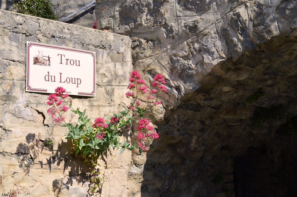 Puis, je me suis arrêtée à Manas, un village botanique de la plaine de la Valdaine. De nombreux massifs jalonnent en effet les petites rues du village. J’ai particulièrement remarqué un passage sous les habitations, nommé Trou du Loup !
