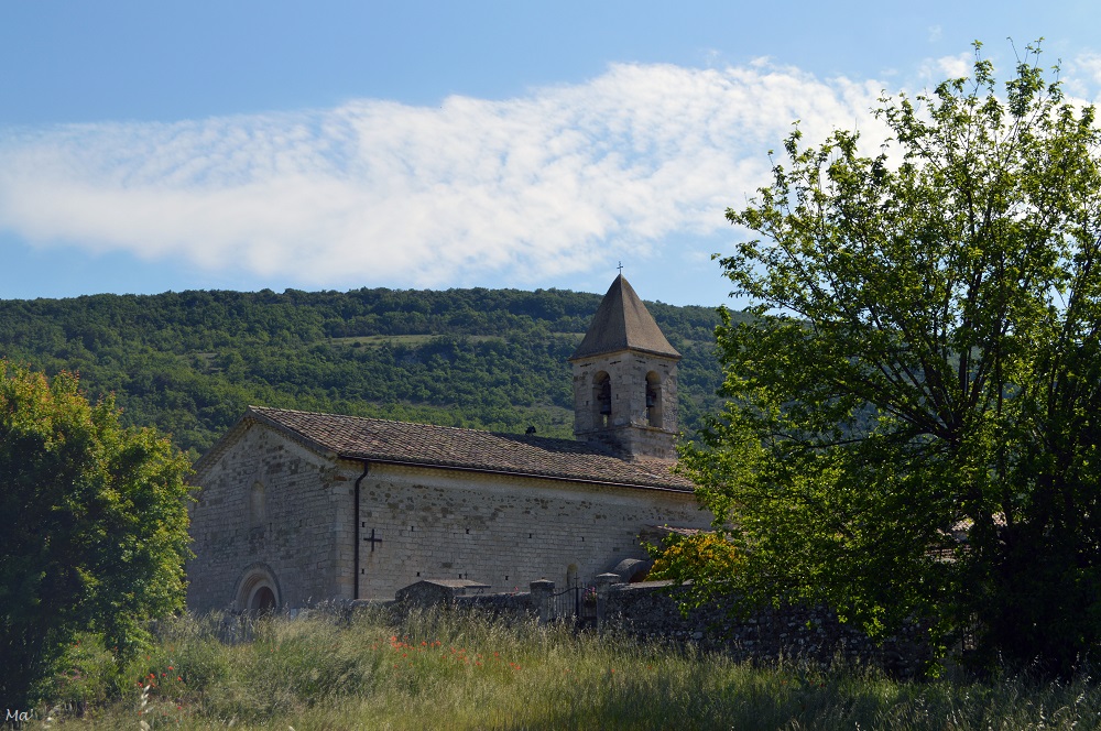 Enfin, je suis arrivée à Rochebaudin. Je fait un arrêt photo au niveau du cimetière où se trouve l’église de l’ancienne abbaye Notre Dame de Sénisse. J’en ai profité pour admirer la vue sur la montagne.