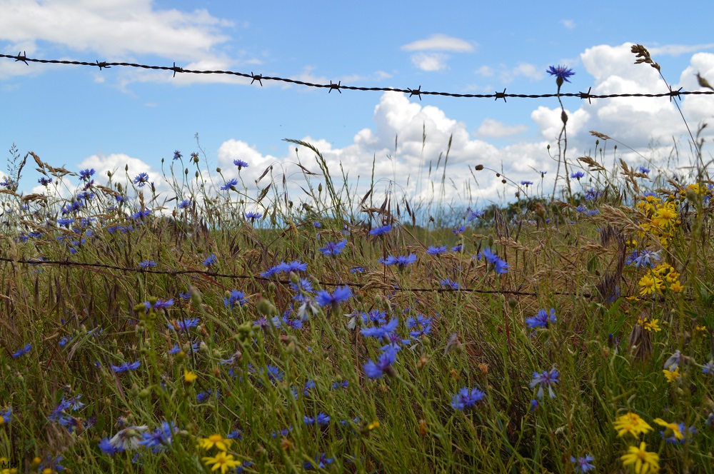 Partant de Tournon, nous avons pris la direction de Saint Jean de Muzols, et avons commencé à grimper en direction d’Etables. Très vite, nous sommes arrivés sur le plateau, et les horizons ont commencé à s’élargir. Au bord de la route, les fleurs sauvages sont légions et les bleuets se font particulièrement remarquer.