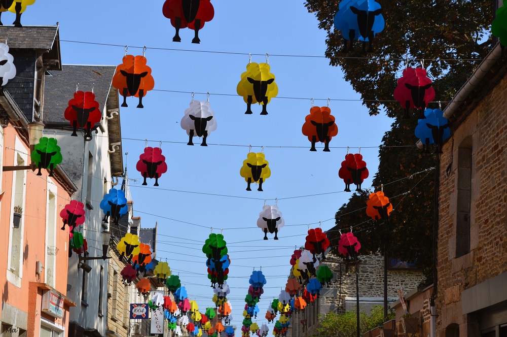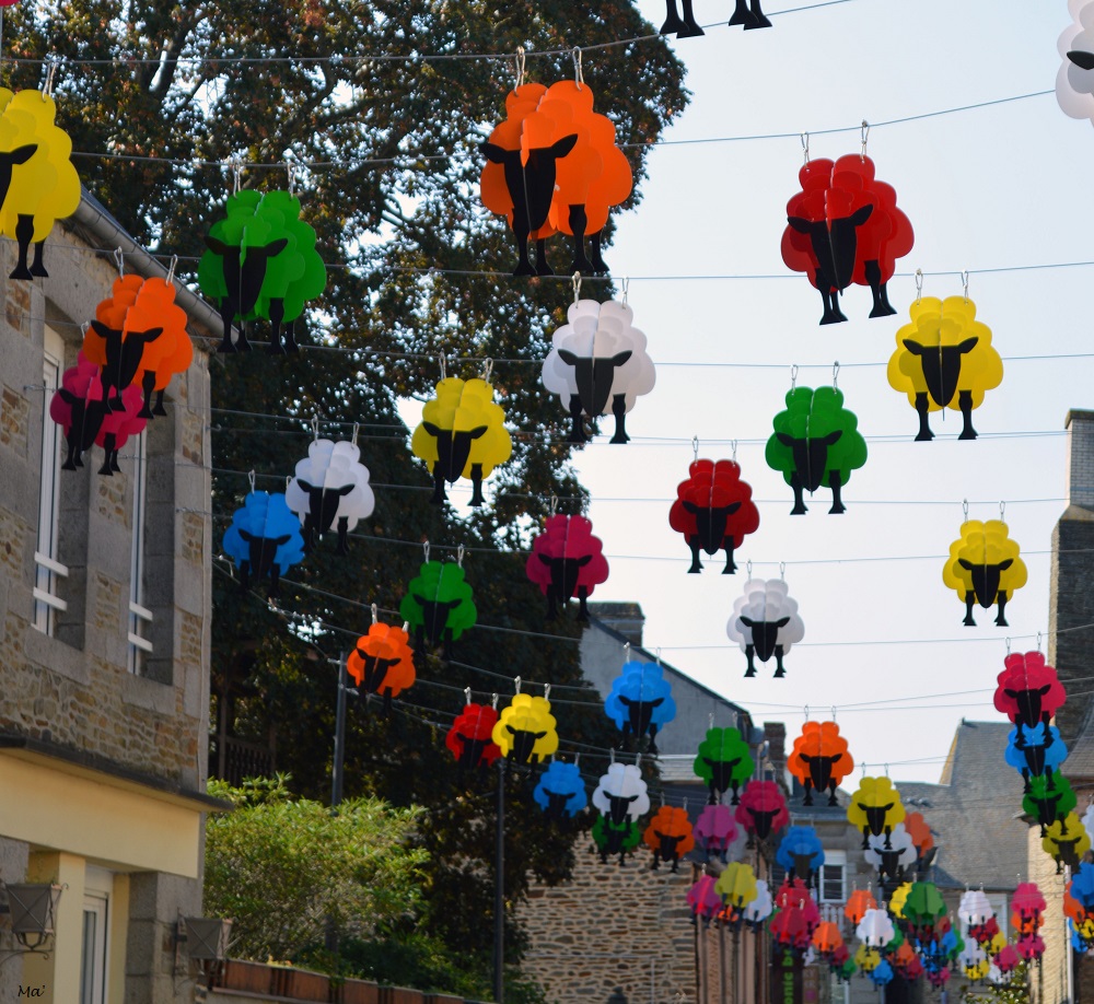 Après les ballons de Romans, ce sont les moutons de Pontorson que j’ai découvert cet été ! Au dessus de la rue de Tanis, 150 moutons colorés se balancent au gré du vent dans un amusant ballet. De quoi mettre de la bonne humeur dans cette ancienne rue très commerçante et qui fait toujours le lien entre la passante rue de Couesnon et les places de l’Hôtel de ville et de l’église où se tient le marché du mercredi matin.