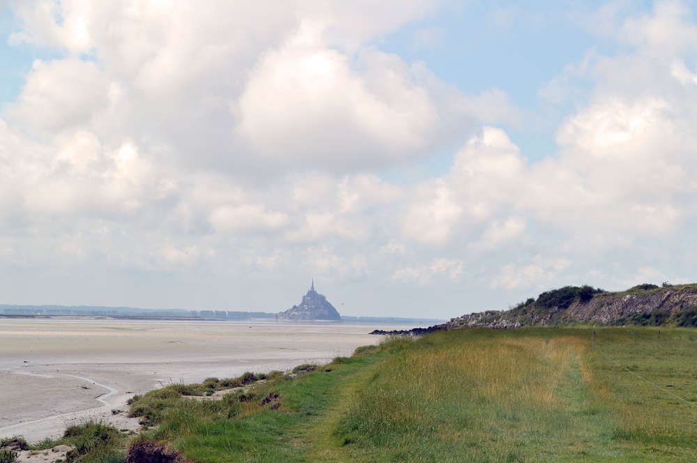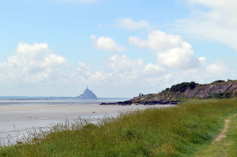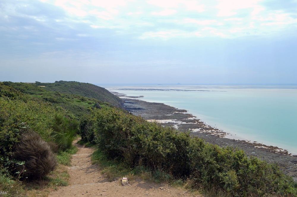 A la pointe du Grouin du Sud..Arriver au « bout du monde »Passage sur la plage…Sur le GR223, longer le chenal de la Séé-SéluneAu repos…En pleine nature…Vue sur le Mont Saint MichelLa mer grignote les prés…Un dernier regard à la pointe du Grouin du Sud et au Mont Saint Michel..