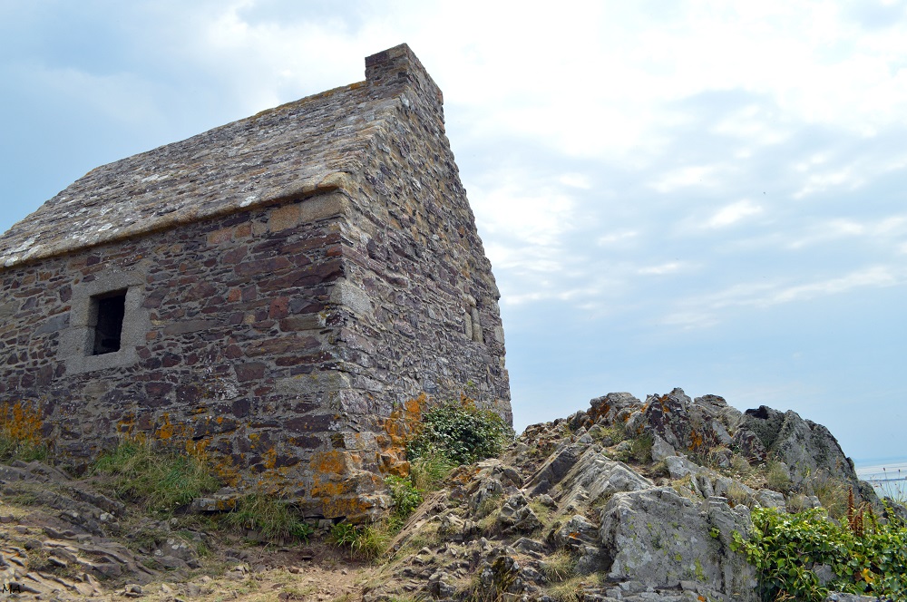 Assez vite, nous arrivons au niveau de la cabane Vauban. Ce petit corps de garde tout en pierre a été construit au XVIIe siècle et faisait partie d’un réseau de surveillance maritime conçu par Vauban. (D’autres cabanes Vauban sont d’ailleurs visibles à Champeaux et Saint Jean le Thomas également). Il faut dire que d’ici la vue est dégagée et permet de surveiller la côte de Cancale à Granville, en passant par le Mont Saint Michel.