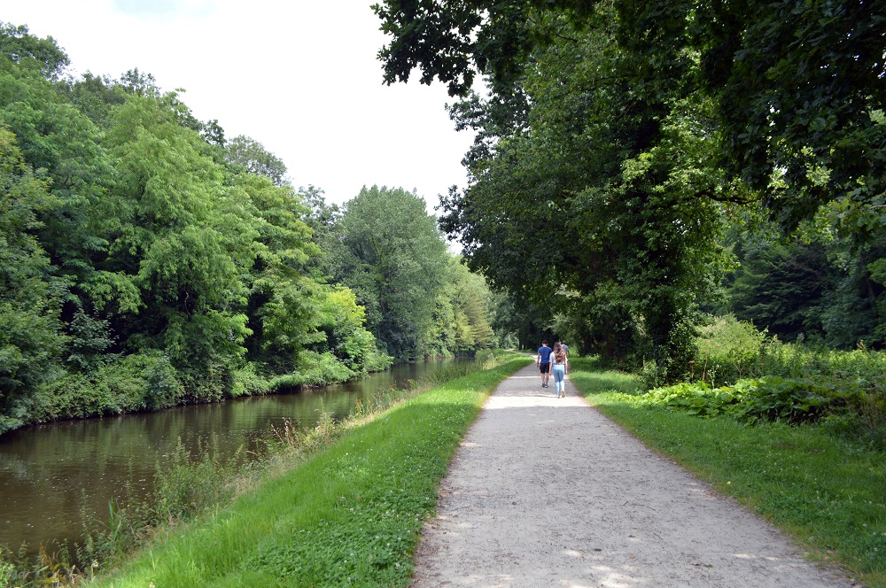 Une fois au port, la foule nous a dissuadés de nous balader le long de celui-ci. Nous avons donc passé le petit pont et pris la direction du chemin de halage vers l’amont. Bien nous en a pris, car rapidement, nous nous sommes retrouvés au cœur d’une nature verdoyante, loin du tumulte du port. Plusieurs points de vue sur le viaduc et sur les remparts de la ville se succèdent. Les lieux sont vraiment agréables. Cependant, nous ferons demi-tour après avoir marché un peu moins de 2 km sur le sentier. Nous n’avons en effet pas terminé de visiter le centre ville, et nous ne souhaitons pas non plus rentrer trop tard.
