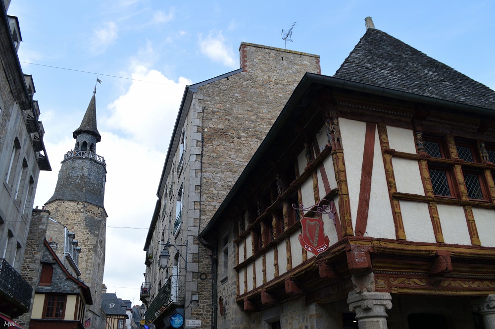 Nous empruntons de nouveau le Jerzual pour remonter mais nous bifurquons au niveau des remparts pour rester un peu au calme avant de nous rendre vers les rues et places animées bordées de maisons à pans de bois (il y en a plus de 130 à Dinan). Après avoir flâné un moment, nous décidons de prendre de la hauteur, et de monter au sommet du beffroi.