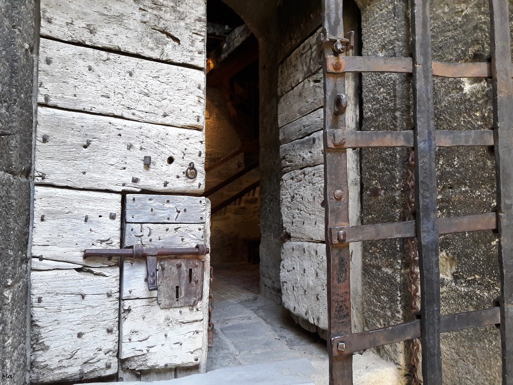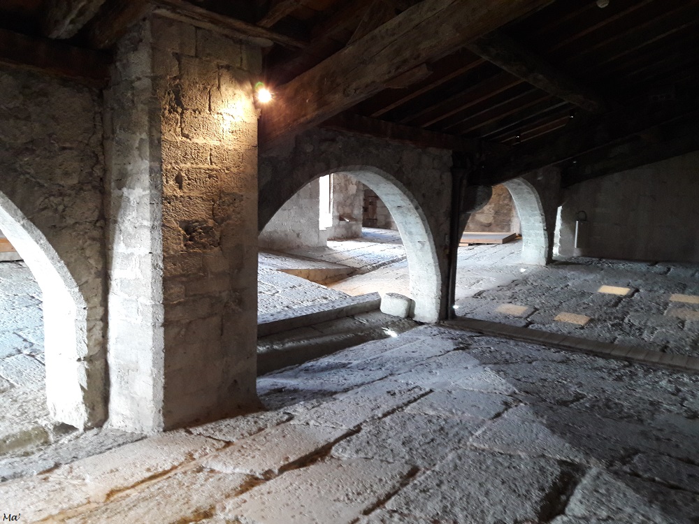 Enfin, on arrive sur l’ancien toit-récupérateur d’eau, ingénieux système du Moyen-Âge pour subvenir aux besoins en eau de la forteresse (bien que des sources existent également au pied du donjon). Toutefois, sujet à des infiltrations, il sera assez vite recouvert d’un toit de tuiles (permettant lui aussi la récupération de l’eau pour remplir la citerne située sous l’édifice). De là, la vue depuis les fenêtres est déjà splendide.