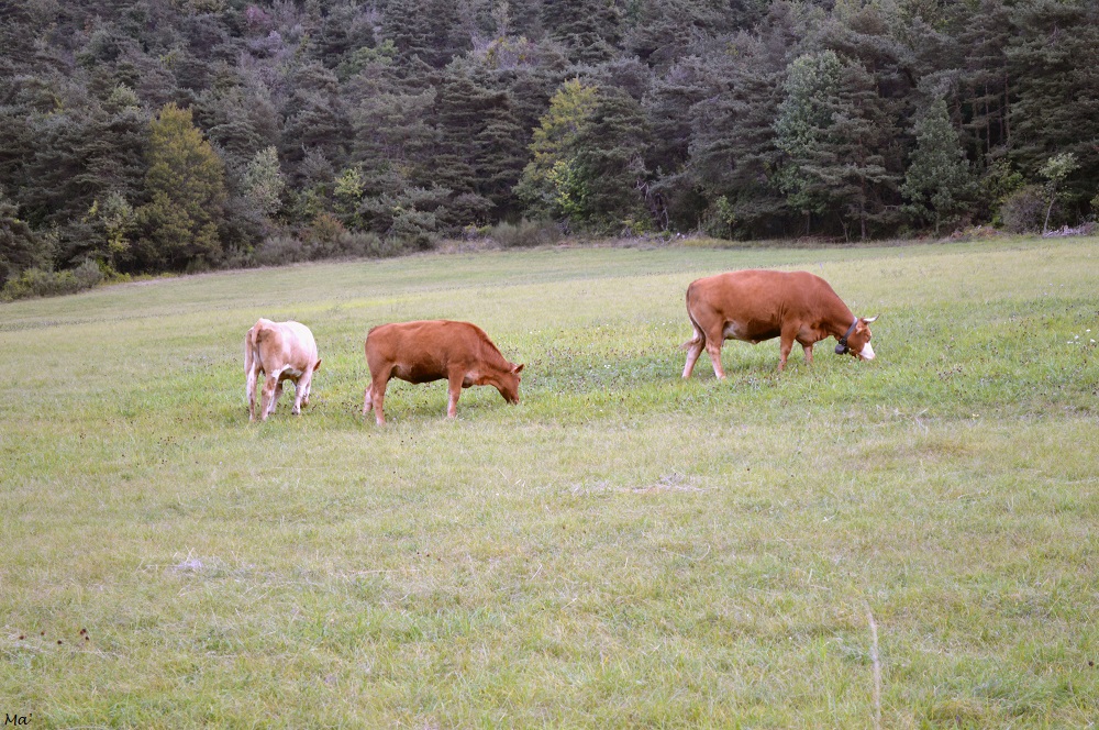 Il était temps de redescendre. Je ne voulais pas trop tarder car j’avais aussi envie de faire un arrêt à Beaufort sur Gervanne en redescendant (et d’y être avant la fermeture de la boulangerie pour m’assurer d’avoir du pain pour mon pique-nique !). J’ai jeté un dernier coup d’œil à la croix, puis je suis retournée retrouver les tintements des cloches des vaches, un peu plus bas…