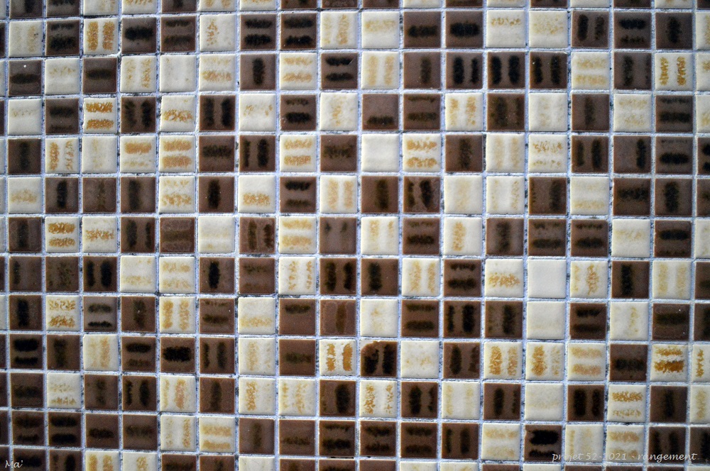 En fouillant dans mes archives, je suis tombée sur cette photo, prise un soir de l’été dernier, dans mon village d’enfance. Je ne l’ai pas choisie parce que les carreaux sont bien rangés mais parce qu’ils composaient l’encadrement de la porte du magasin de chaussures, et comme dans les idées auxquelles j’avais pensé, il y avait une image de boites bien empilées, le raccourci a été vite fait dans mon esprit !