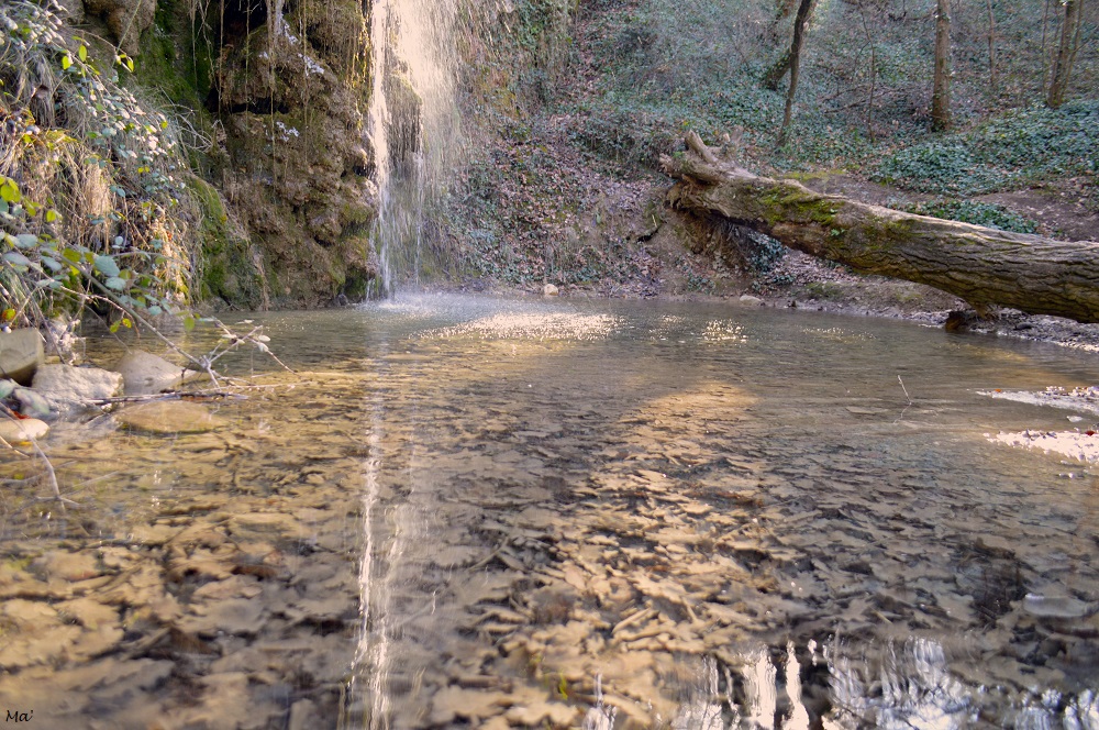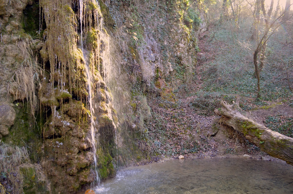 Le ciel est bleu et la température fraîche… une belle journée d’hiver !Au pied de la cascade du RifLes rayons du soleil viennent éclairer la cascadeMagie d’un instantDepuis le porche de la Grotte de la Dame, vue sur la plaine de Valence
