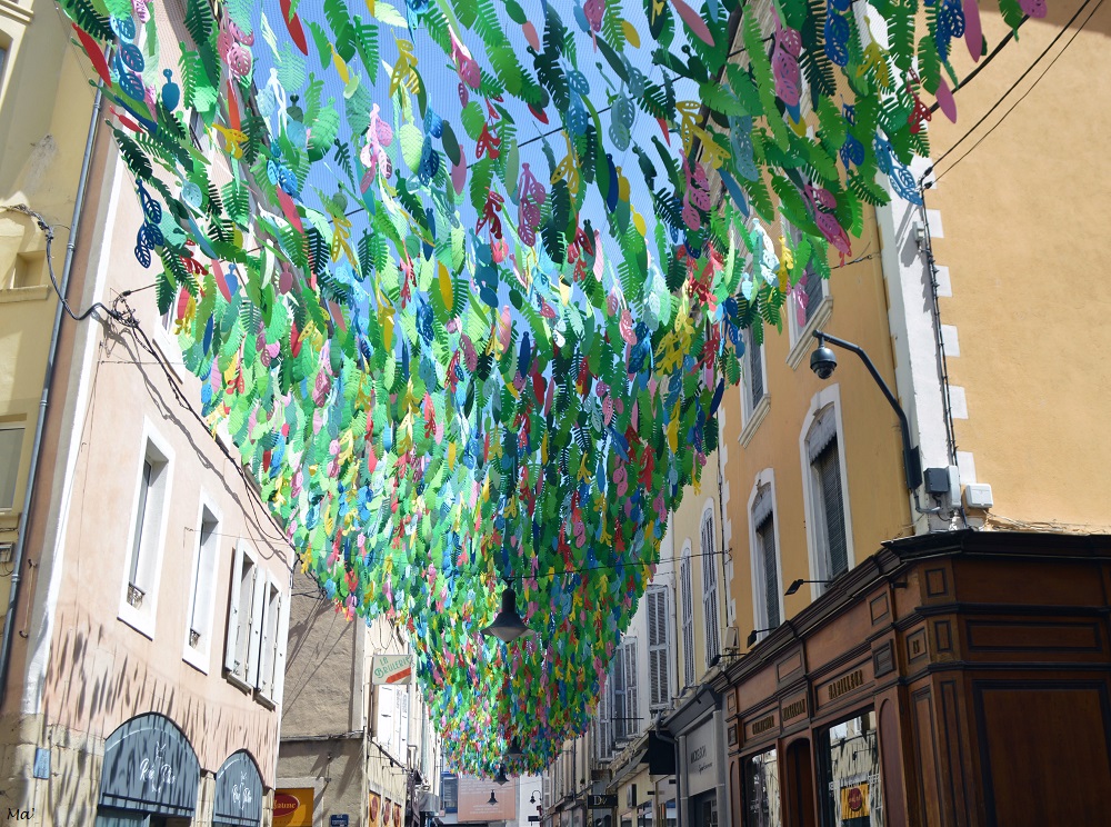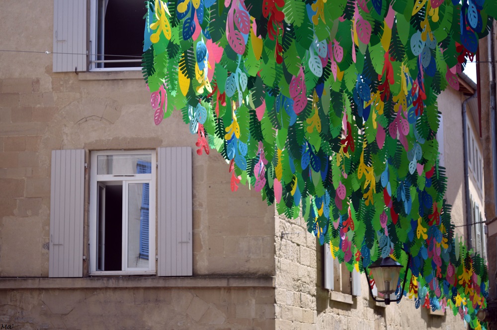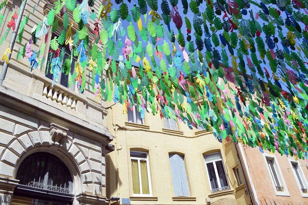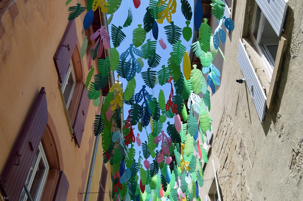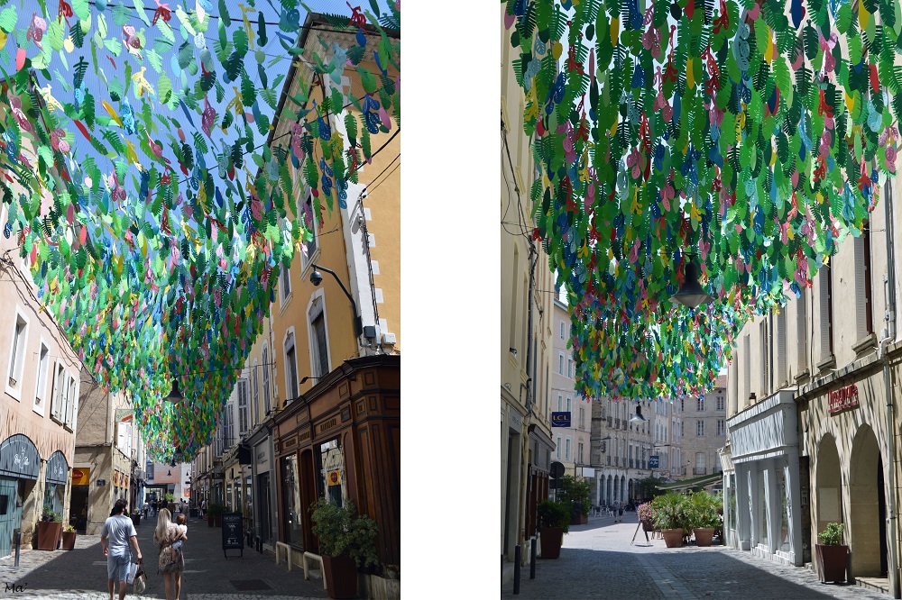 Après les rubans colorés de la Color Rain en 2020 et les ballons multicolores du Bubble Sky l’année dernière, les rues de Romans se sont parées d’une multitude de feuilles aux couleurs exotiques pour cet été 2022. Comme l’an dernier, c’est la Côte Jacquemart et la rue Mathieu de la Drôme qui bénéficient de ce décor éphémère.