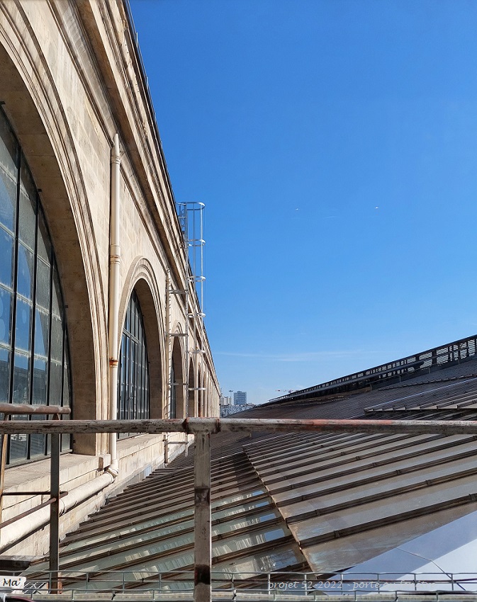 C’est donc une photo de gare que je vous propose, où en regardant par la fenêtre, on devine les verrières qui éclairent le fond de la grande halle.