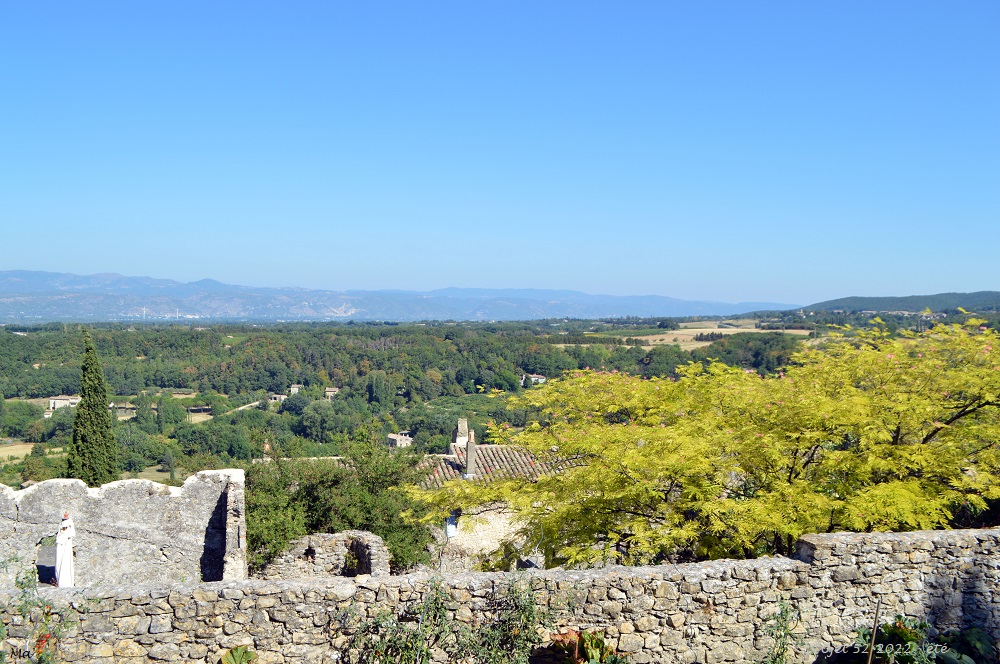 Je prolonge la promenade jusqu’au belvédère d’où la vue sur le val de Sioule est bien dégagée et offre un horizon à plusieurs dizaines de kilomètres. Puis, je gagne la fabrique la moutarde de Charroux (ce serait dommage de repartir les mains vides du village… et comme je suis allée acheter déjà des bougies peu de temps avant à ma boutique lyonnaise… ).