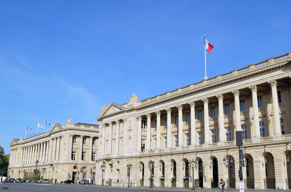 La façade de l’Hôtel de la Marine, sur la place de la Concorde, avec le bâtiment symétrique abritant l’hôtel de Crillon et l’Automobile Club de France, est l’œuvre de l’architecte Ange-Jacques Gabriel, sous Louis XV.
