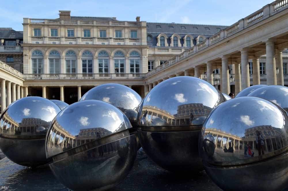 Jouer avec les reflets dans les fontaines mobiles de Paul Bury au Palais Royal
