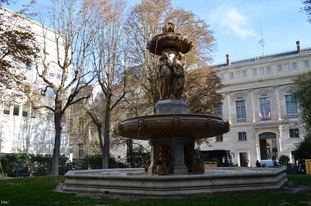 La fontaine des quatre fleuves entre la rue Lulli et la rue Richelieu