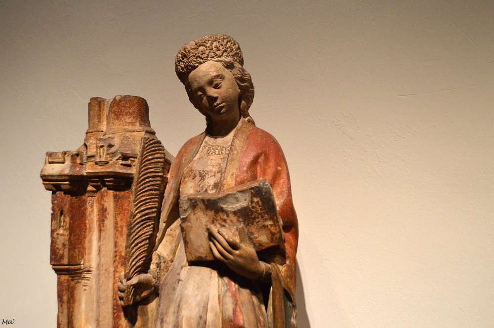 Installé dans un ancien hôtel particulier de la fin de Moyen-Âge et sur les anciens thermes de Lutèce, le musée de Cluny a été repensé en 2018. Il héberge de riches collections d’art couvrant toute la période du Moyen-Âge en Europe. Je ne sais pas dire si c’est parce que nous étions un peu fatiguées (j’avoue que j’ai profité plusieurs fois des bancs dans le musée car mes jambes commençaient à en avoir marre de me porter après 3 jours à plus de 15 km dont une partie en « piétinant »…) ou si parce que les explications des panneaux et cartels étaient insuffisantes, mais nous n’avons pas compris la muséographie qui ne nous a semblé ni vraiment chronologique ni vraiment thématique. Nous avons donc eu un problème de lisibilité de la collection présentée. Malgré tout, nous avons pu admirer des œuvres très intéressantes, dont les fameuses tapisseries de la Dame à la Licorne.