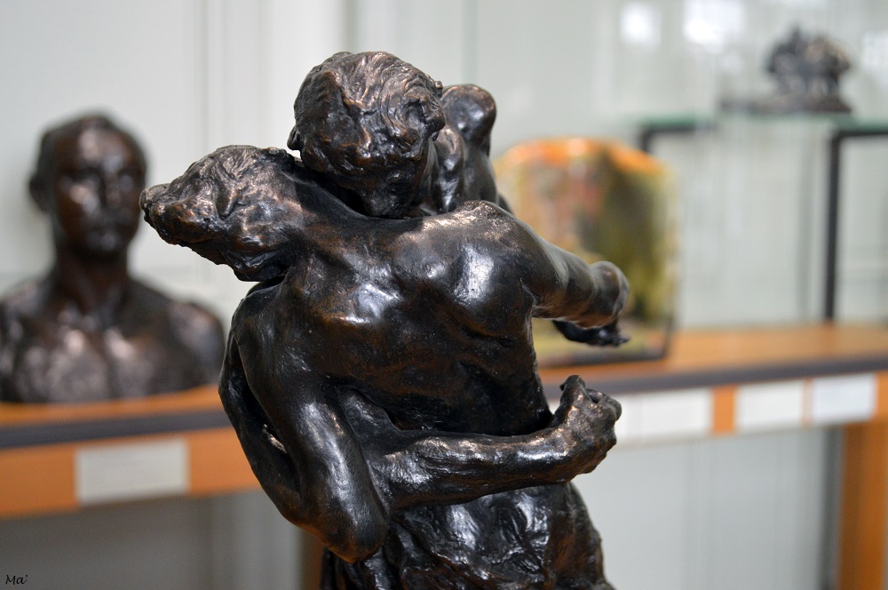 Mais la richesse du musée Rodin, c’est l’exposition de nombreux bronzes, marbres et plâtres représentant l’ensemble de l’œuvre du sculpteur et permettant de comprendre son processus de création. Je reste chaque fois impressionnée par la puissance qui ressort de ses sculptures, ainsi que par le détail de celles-ci. Le musée permet également de découvrir quelques tableaux ou sculptures d’autres artistes ayant appartenu à Rodin. Une salle est ainsi consacrée au travail de Camille Claudel, élève et maîtresse de Rodin. Elle a pourtant su faire naître son propre style, tout en finesse et délicatesse, flirtant sur le fil des fragilités humaines. Après les salles du musée, nous avons bravé une averse (dont nous nous sommes abritées sous les branches d’un marronnier centenaire) pour découvrir les sculptures monumentales installées dans le jardin.