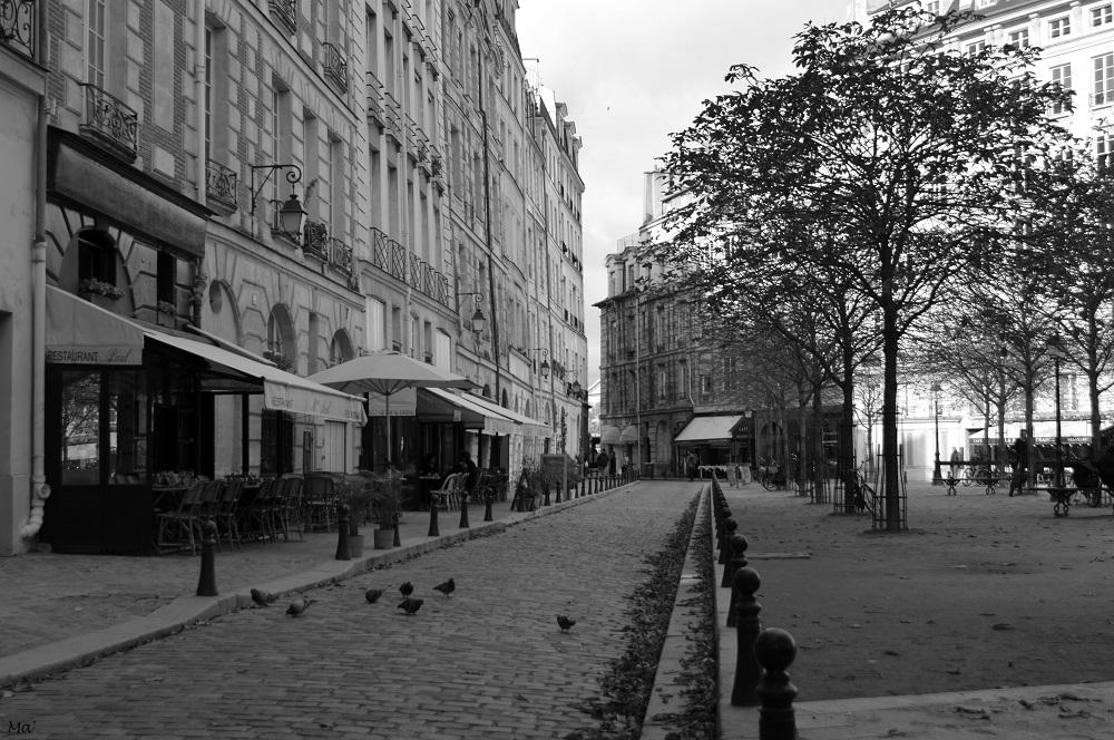 Avant de quitter l’Île de la Cité, nous sommes passées par la place Dauphine, au charme très « parisien »