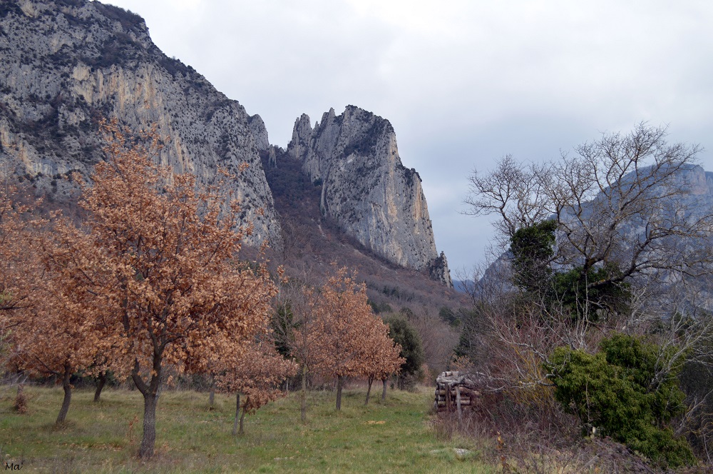 La balade sur les flancs de Roche Colombe, c’est l’histoire d’une randonnée qui n’était pas du tout prévue, ou du moins pas prévue à cet endroit-là. J’étais en effet partie pour aller marcher au cœur de la forêt de Saoû. Il y avait à cela plusieurs avantages dont celui de pouvoir faire une jolie promenade avec peu de dénivelé. J’étais en effet fatiguée d’une semaine bien remplie et d’un début de week-end éprouvant, et j’envisageais plutôt une sortie tranquille. Mais les éléments en ont décidé autrement…