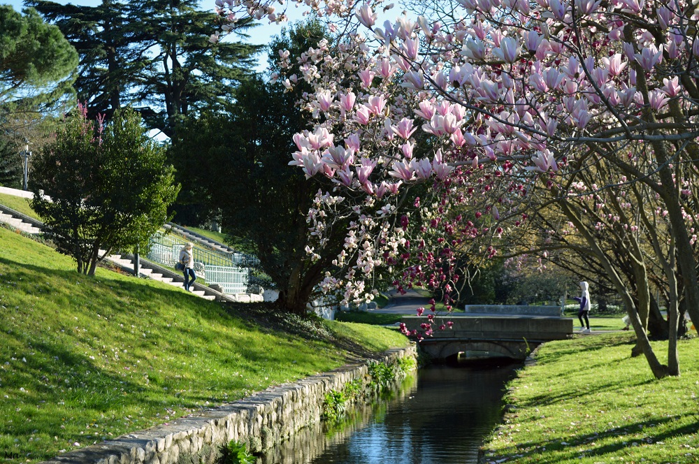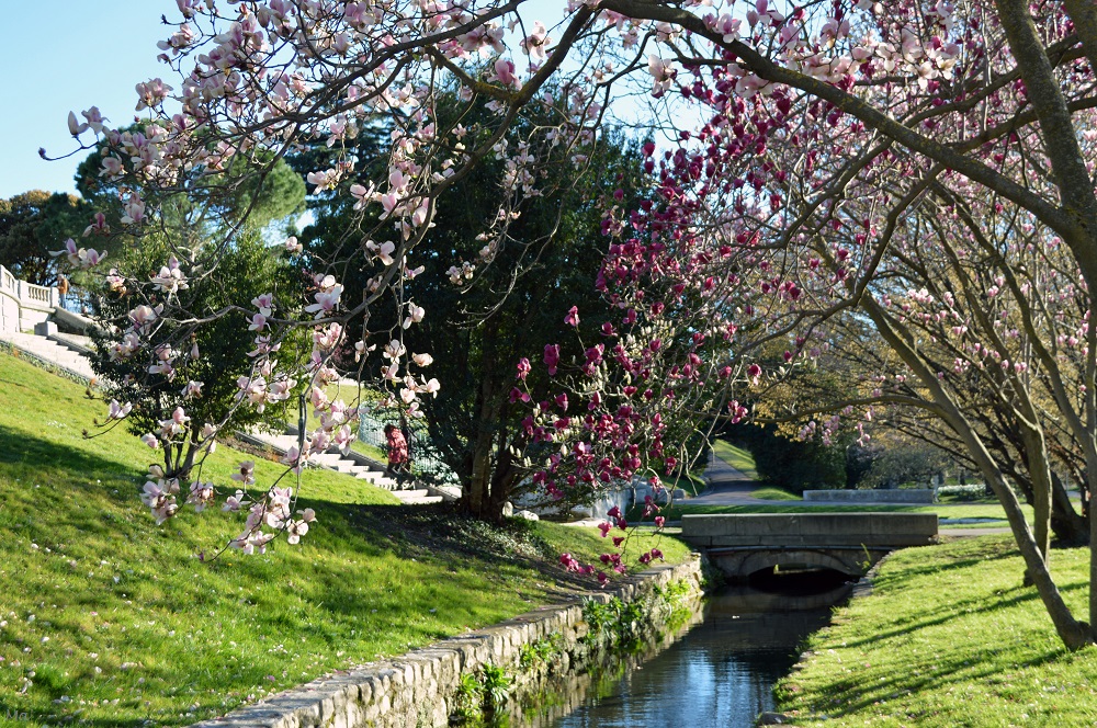 Mais les véritables stars du printemps au Parc Jouvet, ce sont les magnolias. Avec leur floraison imposante et éphémère, ils suffisent à attirer badauds et photographes en nombre. Il y a principalement deux endroits dans le parc où les trouver : d’une part le long du canal de l’Epervière côté boulevard dans le haut du parc et d’autre part à côté de la Maison du Gardien (qui est maintenant un lieu d’expositions). L’année dernière, j’étais allée fin mars pour voir les magnolias en fleurs au Parc Jouvet. Si j’avais pu voir beaucoup de variétés de fleurs, c’était un peu tard pour certains magnolias qui avaient déjà perdu leurs pétales.
