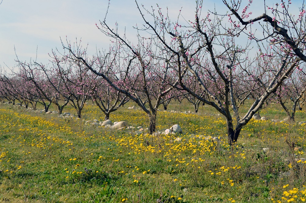 S’il y a bien un incontournable du printemps dans les environs de Valence, c’est la floraison des vergers. Il suffit de parcourir la campagne pour s’en rendre compte. C’est généralement depuis le train que je repère les champs aux couleurs blanches et roses signalant qu’il va être temps de prendre mon appareil photo et d’aller me balader sur certaines routes de campagnes vers Chateauneuf-sur-Isère. Ce n’est bien entendu pas le seul secteur où l’on peut trouver des vergers autour de Valence, mais je dois avouer que j’y ai mes habitudes et que je sais exactement où se trouvent les champs où je peux facilement m’arrêter.