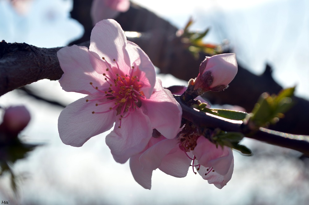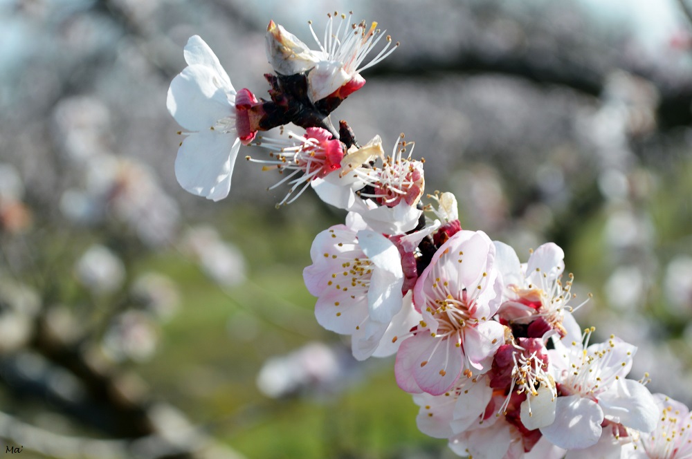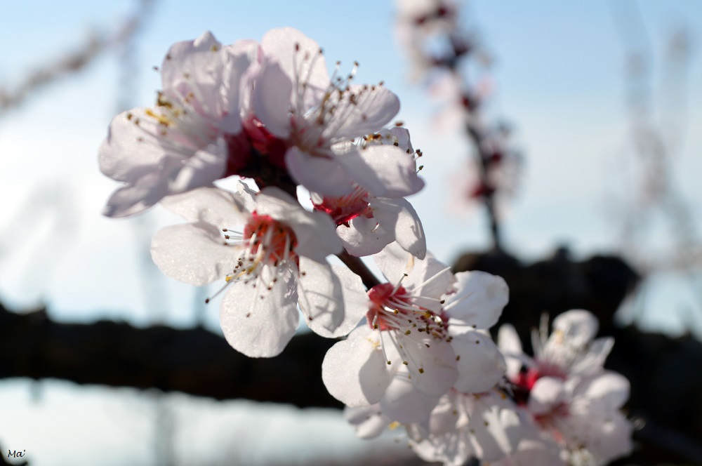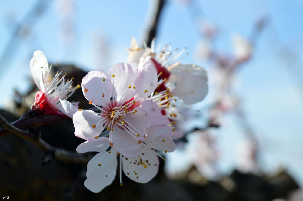 Contrairement aux dernières années, la floraison n’a pas été trop précoce. Si, en particulier en 2021, les premières fleurs étaient apparues dès le mois de février, elles ont cette année attendu que mars soit déjà entamé pour éclore. Ainsi,le week-end dernier, les pêchers étaient encore assez timidement fleuris et seuls les abricotiers précoces présentaient une floraison complète. D’ailleurs, les abeilles ne s’y sont pas trompées et ne sortent pas encore beaucoup. Alors qu’habituellement les champs bruissent de leurs bourdonnements, c’était ce matin-là extrêmement calme. Mais même sans abeilles à photographier, je suis restée un long moment à admirer les fleurs délicates qui deviendront de succulents fruits (si une gelée ne vient pas tout contrarier… croisons les doigts).