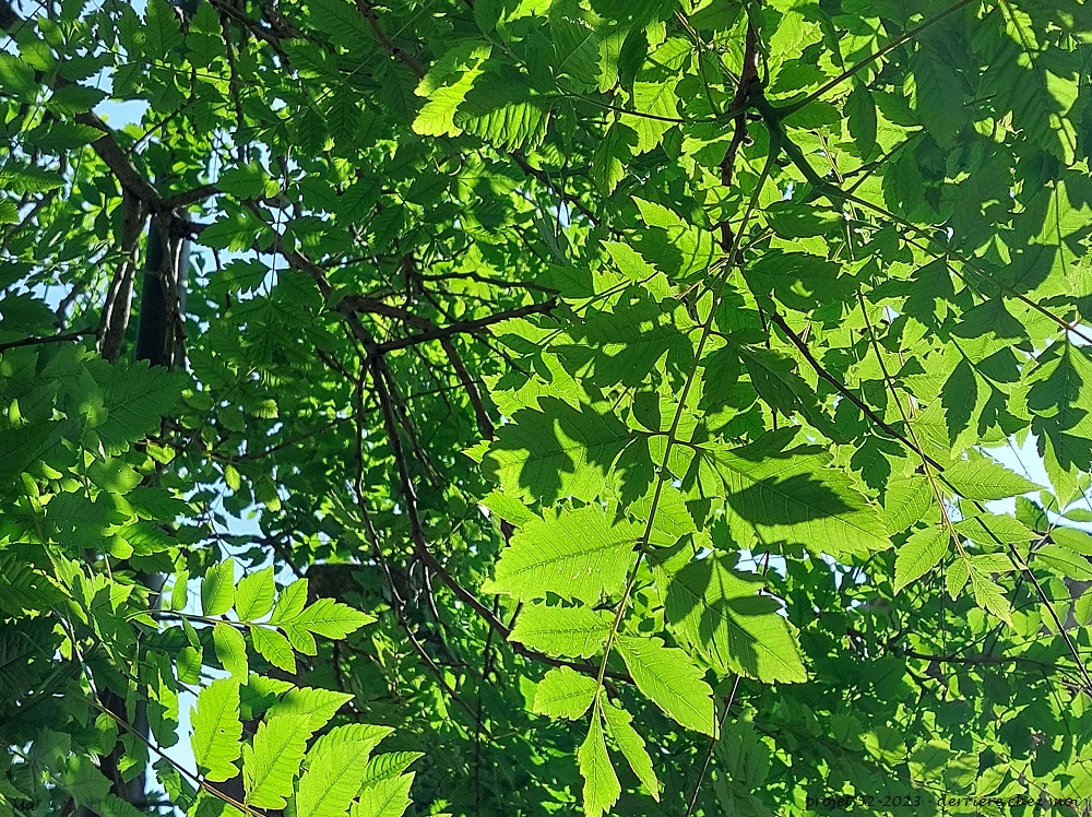 Cette semaine, le projet 52 nous invite à ne pas trop nous éloigner afin de regarder ce qui se trouve derrière chez soi. J’habite dans un village à la campagne, et derrière chez moi, on trouve vite des coins de nature : bois, champs, sentiers… Il y a de quoi faire ! Et dans les quelques rues qui me séparent de la verdure, je trouve encore de la verdure entre des bordures de maison fleuries, un mail planté de tilleuls et un petit square à l’abri d’un arbre. J’aime d’ailleurs bien le prendre en photo cet arbre quand le soleil joue avec son feuillage, comme c’était le cas ce jour-là.
