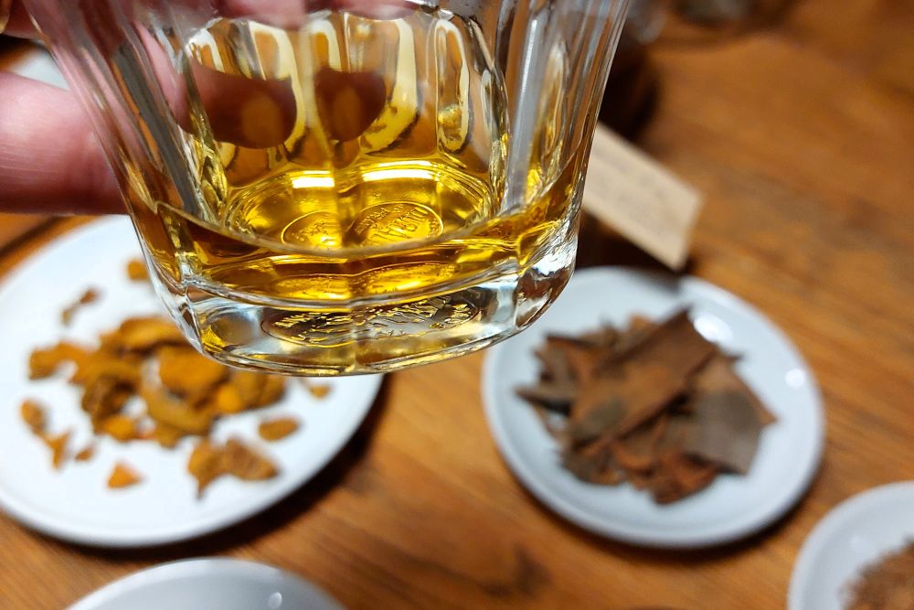 Caravane d’Or : le curcuma, puissant et odorant, s’y marie très bien avec la fraicheur de la menthe poivrée et le côté réconfortant de la cannelle.