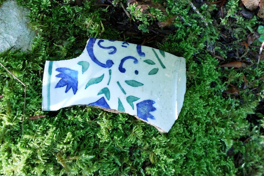 Cette semaine, le projet 52 nous emmène en balade. Vous le savez déjà, je suis assez souvent en balade, que ce soit près ou plus loin de chez moi. J’ai un peu hésité pour illustrer ce thème, car j’avais beaucoup de photos s’y prêtant : des balades le long du Rhône, des balades en forêt, des balades en montagne, des balades en campagne, et même quelques balades en bord de mer de l’été dernier. Mais je cherchais une image un peu originale ou insolite. C’est le hasard qui m’a donné mon illustration, alors que je marchais en forêt. En effet, alors que je traquais les champignons, j’ai trouvé un tesson de céramique. C’était complètement improbable car nous étions en pleine forêt, loin de tous les villages ou hameaux. A ce jour, je n’ai pas réussi à percer le mystère de ce morceau de vaisselle en pleine montagne. Peut-être qu’une fée maladroite était venue ici prendre le thé ?