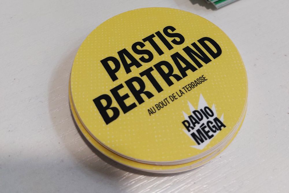 Je suis donc allée de nouveau faire un tour dans les photos que j’ai prises ces dernières semaines, espérant y trouver ce dont j’avais besoin. J’ai alors retrouvé quelques images prises rapidement fin janvier pour l’inauguration des nouveaux locaux de Radio Méga à Valence, une radio associative. Ils avaient édité des stickers avec des jeux de mots autour de noms d’artistes. C’est ainsi que l’on pouvait croiser David Feta ou Pastis Bertrand…