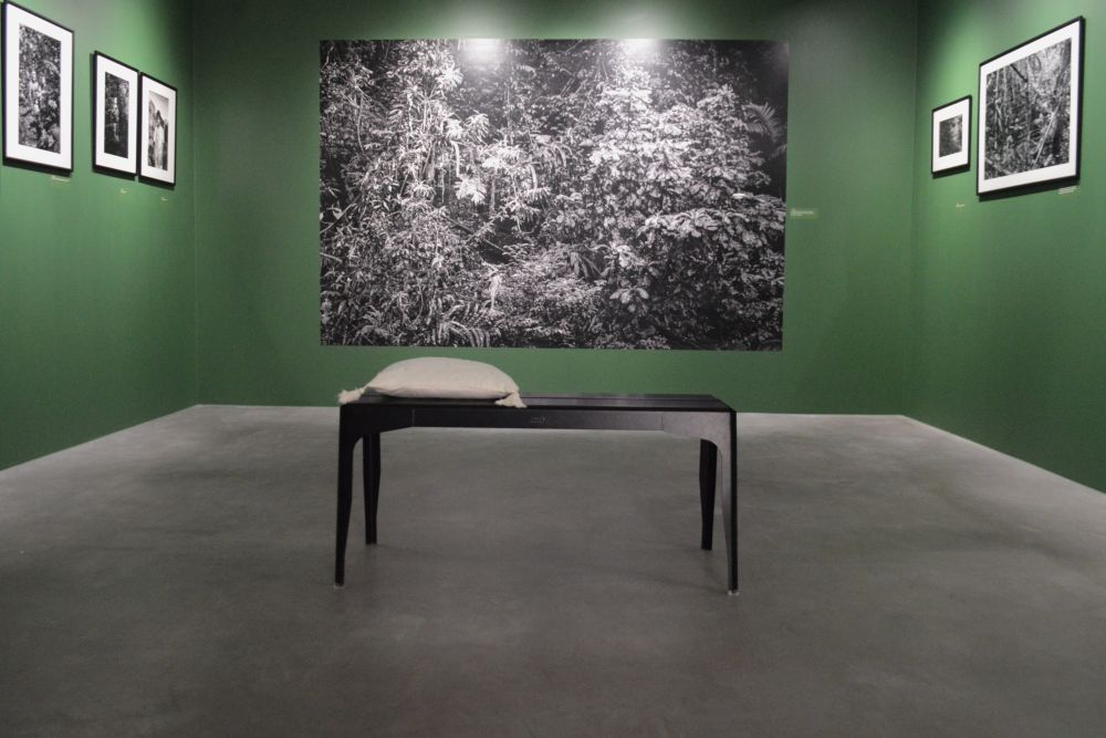 Ce qui m’a frappé en premier, c’est la composition impeccable des photographies de Pierre de Vallombreuse. Chaque fois, l’humain est présenté comme minuscule face à l’immensité de la canopée de la forêt primaire. Affichées en grands formats, l’impression de plonger dans les images est fascinante. Mais assez vite, quelque chose m’a dérangée dans la scénographie de l’exposition, dans le choix des textes affichés, dans la présentation qui accompagne et contextualise les photos.
