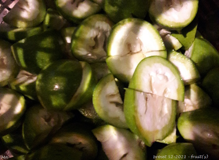 La semaine dernière, dans les états d’esprit, j’ai évoqué le vin de noix que j’ai mis en macération après avoir trouvé des noix vertes au marché. En effet, le vin de noix se fait à partir des « noix de la Saint Jean » (cette année compte-tenu de la météo du printemps, il a fallu attendre une quinzaine de jours supplémentaires… ). Voici donc mes noix vertes découpées (et je vous mets la recette en fin d’article).