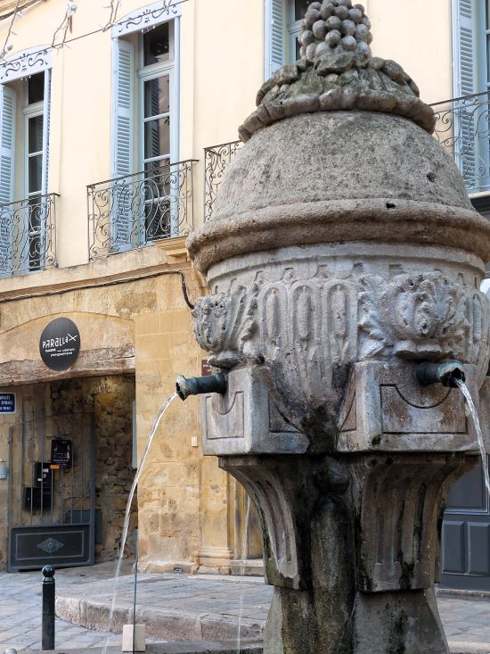 - Le centre ville d’Aix est très agréable pour s’y balader. Les rues sont bordées d’anciens hôtels particuliers et les places sont ponctuées de fontaines (Aix vient du latin acqua qui signifie eau). La cathédrale possède un baptistère paléo-chrétien ainsi qu’un cloître remarquable.